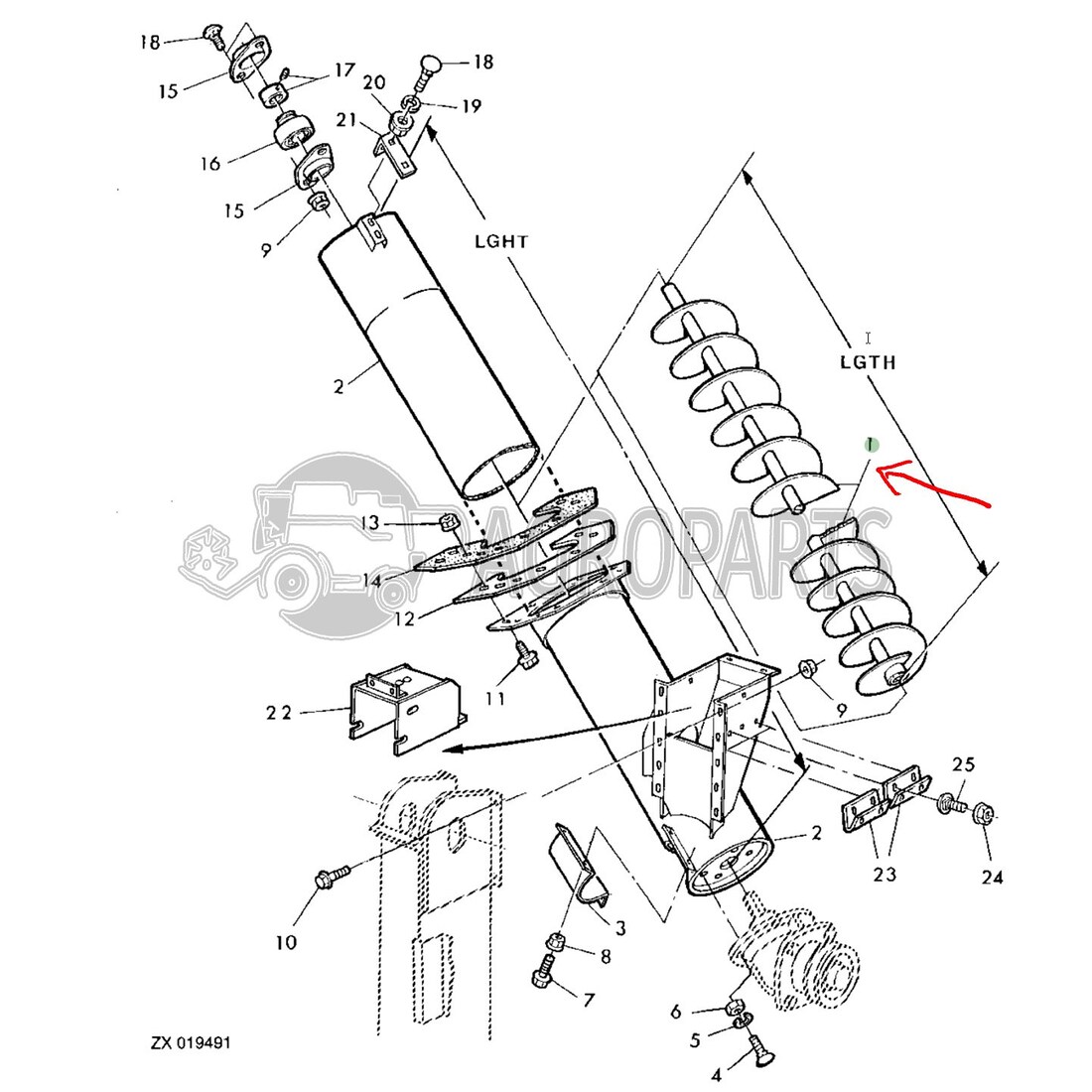 Grain tank filling auger for John Deere combines, AZ52361.